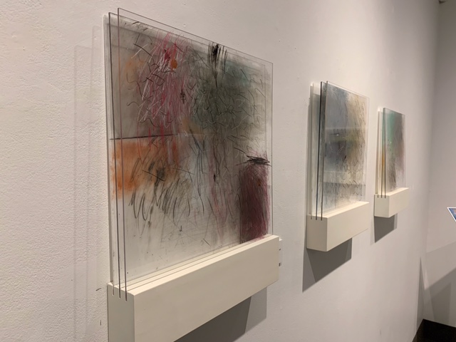 Mixed media and collage on glass and plexiglass